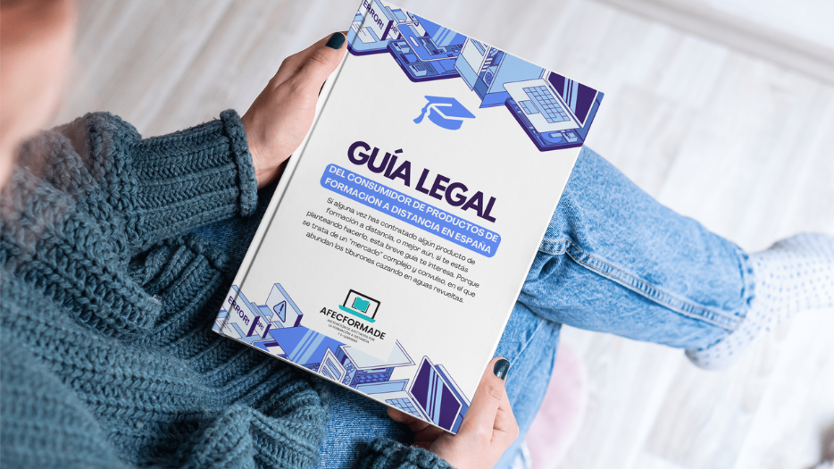 - Conseguir nuestra GUÍA LEGAL DEL CONSUMIDOR DE PRODUCTOS DE FORMACIÓN A DISTANCIA en formato PDF. Un breve pero preciso estudio, elaborado por uno de los despachos jurídicos con más experiencia en la materia de España, con una explicación para todos los públicos del marco legal vigente, y con consejos legales, para antes, durante y después de contratar formación a distancia. Incluye también formularios para el desistimiento y reclamación a las entidades de formación.